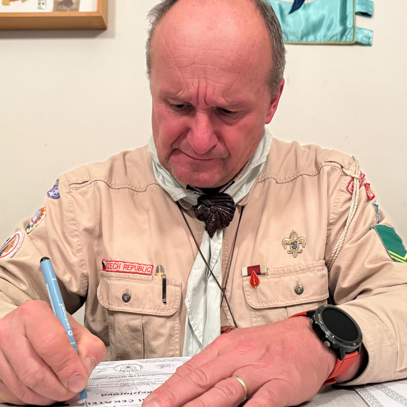 Pokecáte si s ním o vedení oddílu – zeptejte se třeba na výpravy, oddílové modifikace stezek nebo kroniky.