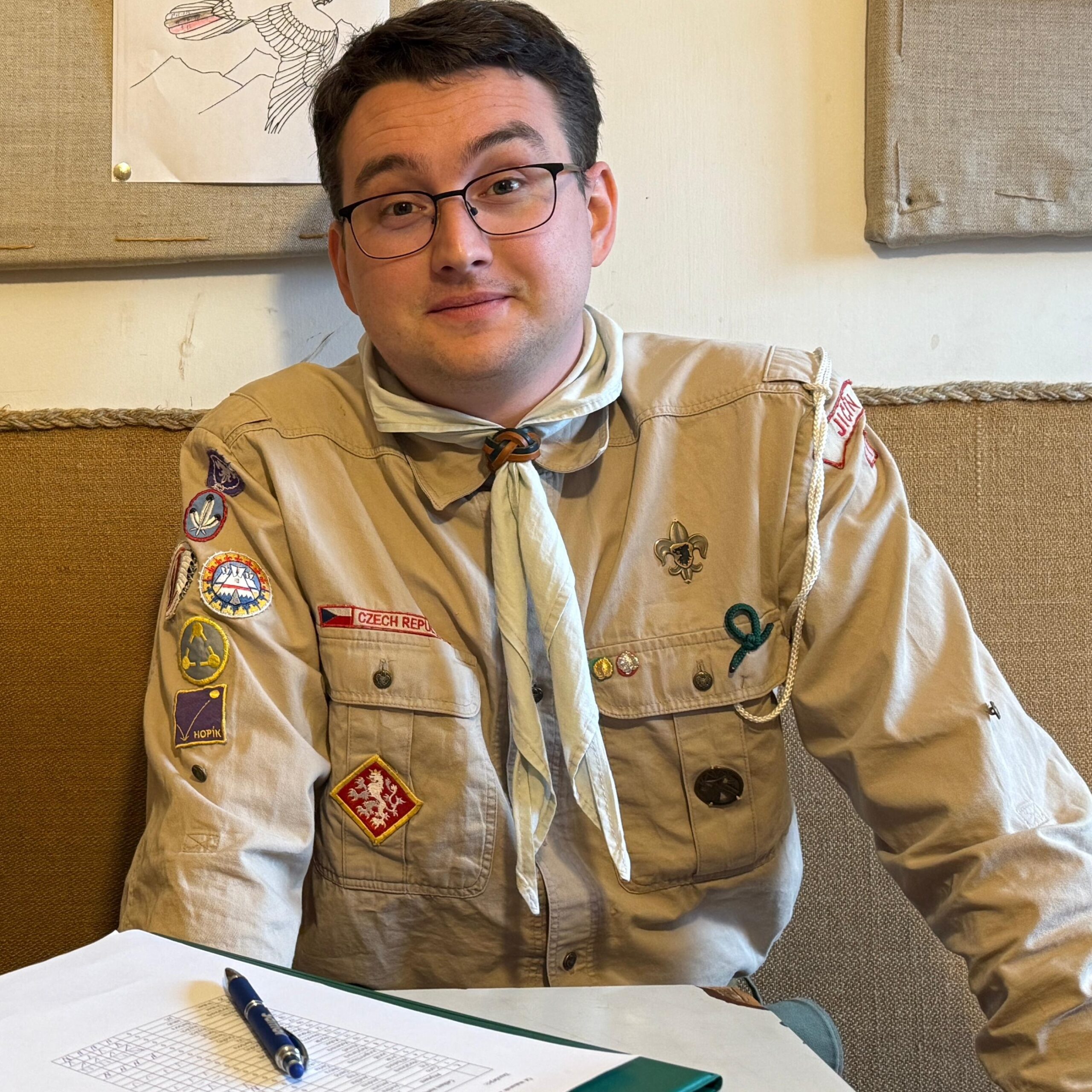 Pokecáte si s ním o skautské výchovné metodě [oblast expertízy]– zeptejte se třeba [konkrétní věc, o které toho ví hodně].