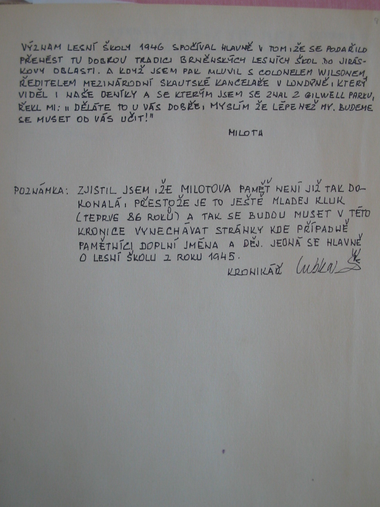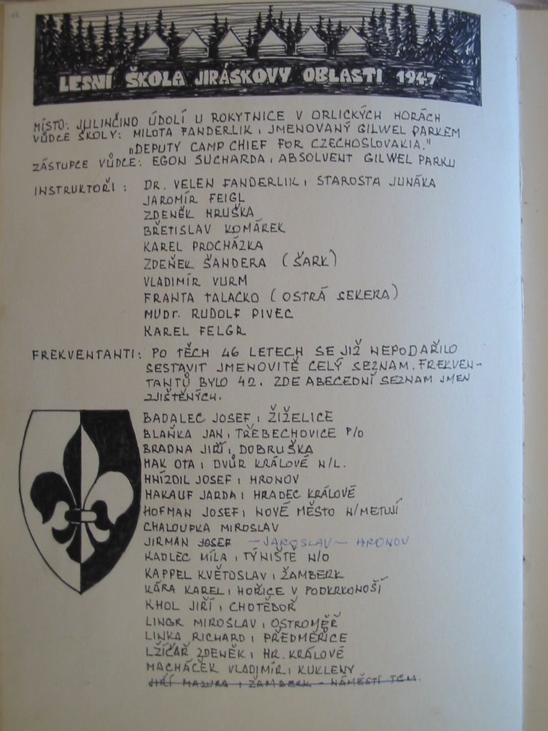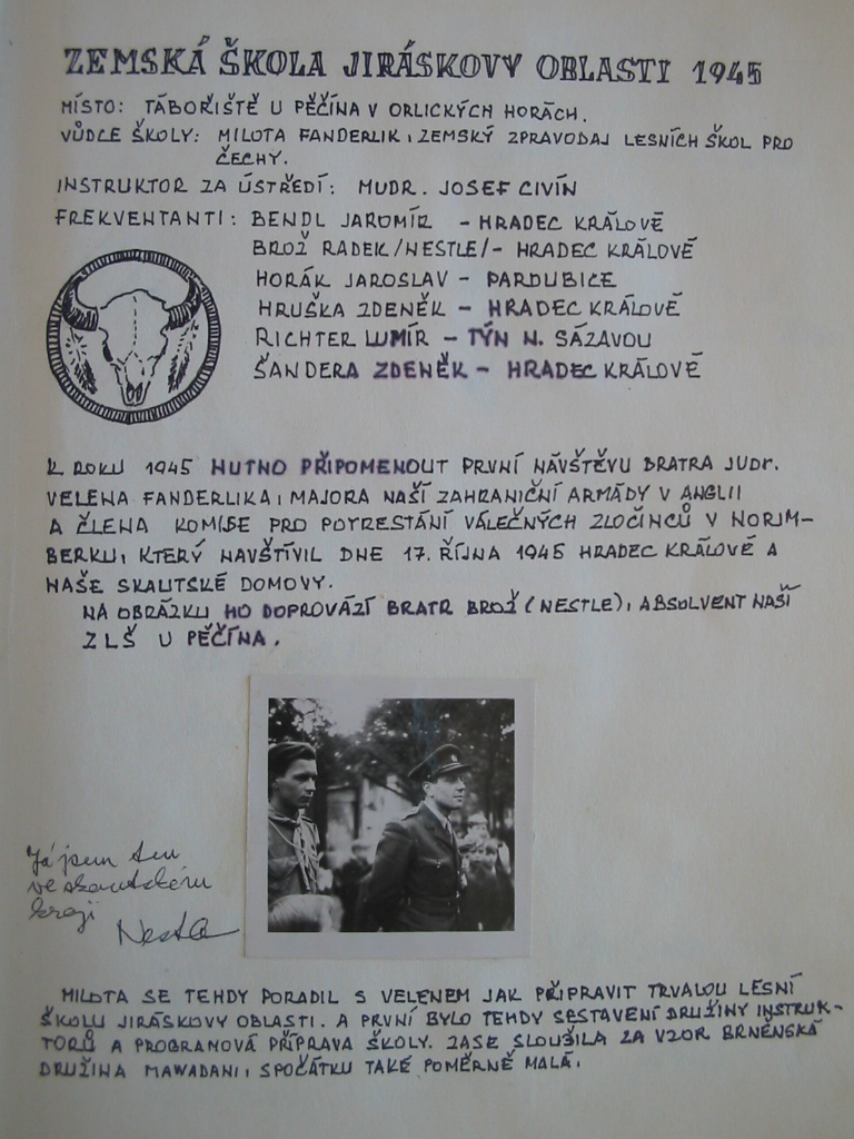 Po druhé světové válce působil Milota Fanderlík v Hradci Králové a přenesl styl moravské lesní školy do Jiráskovy oblasti. Ta uspořádala tři poválečné lesní školy v letech 1945, 1946 a 1947. Druhý zákaz skautingu však tuto práci přerušil. V roce 1968 Milota Fanderlík obnovil tradici pořádáním Oblastní lesní školy v Potštejně, následované v roce 1969 pátou Lesní školou Jiráskovy oblasti. Na další pokračování si však museli skauti opět počkat.